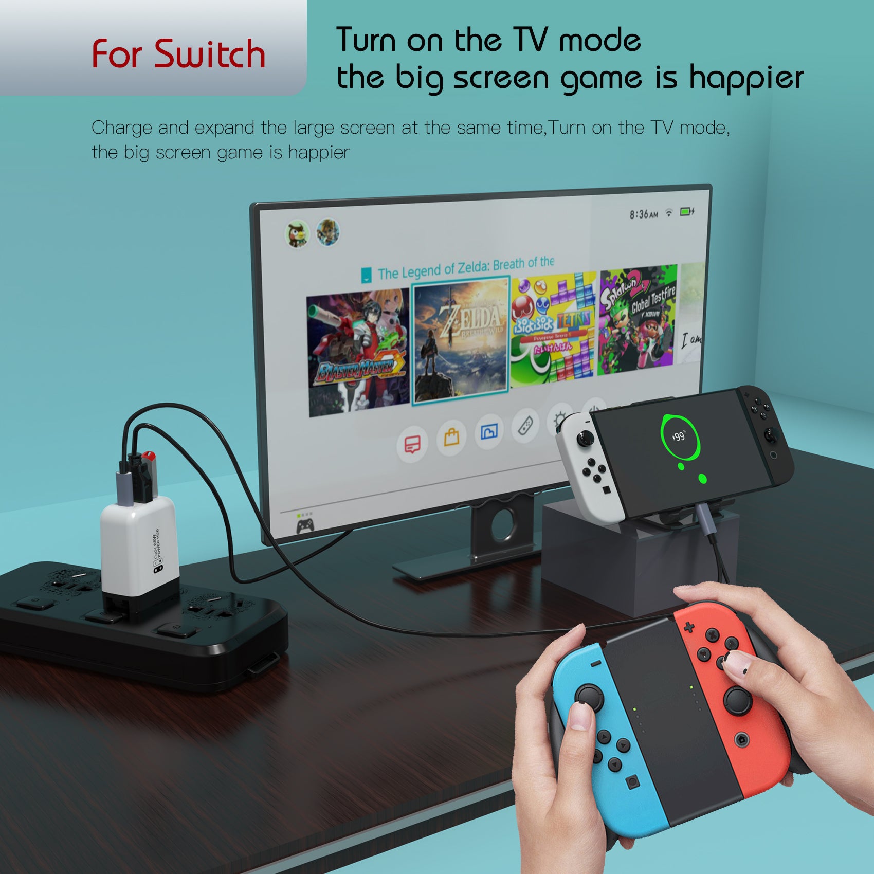 - Actual charging: While the dock can output 65W, the Nintendo Switch typically draws about 15W during gameplay